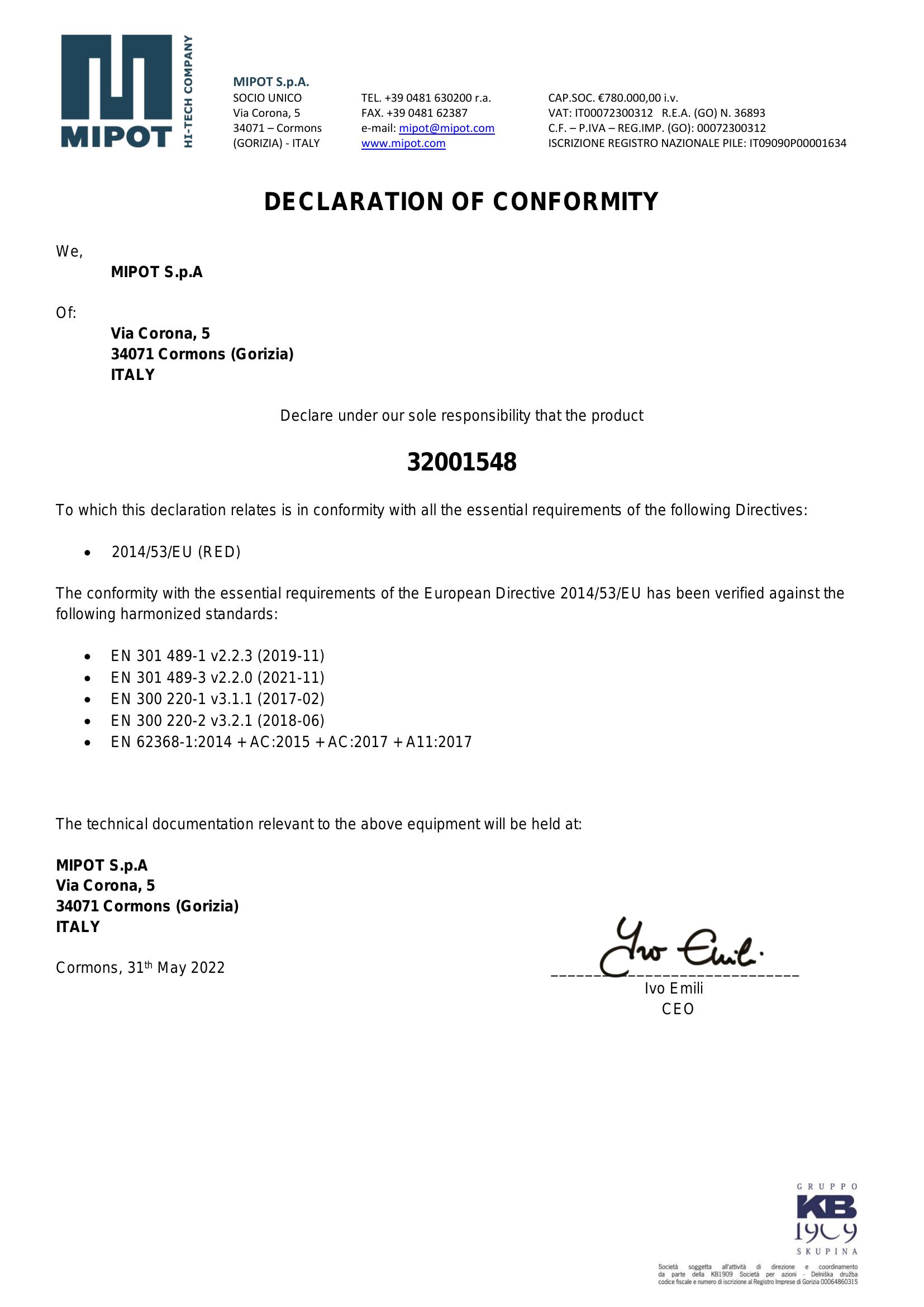 The module meets with the Radio Equipment Directive (RED) 2014/53/EU.
